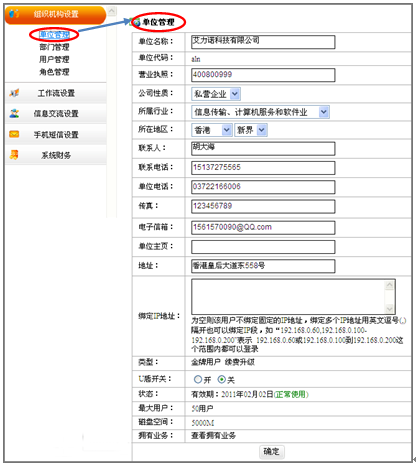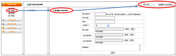 9、1 部门管理,主要根据公司的实际情况添加公司所有部门,有助于公司管理及用户的添加工作。如图所示: