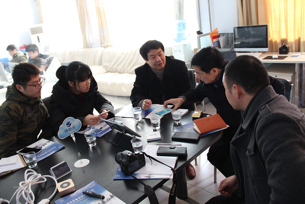 2017年元月19日上午,河南CIO联盟理事长朱添福带队,来到安阳高新区专利成果转化基地考察【纬地云】。朱理事长十分重视河南企业信息化发展,积极探索如何用务实的精神,可行的方法,推动河南企业“两化融合”,促进河南经济的健康发展。朱理事长这次带队参观考察【纬地云】是2017年工作部署的一次摸底和探索,他与相关人员认真听取了纬地公司的详细讲解,并对2017年如何联合开展信息化服务做了沟通和展望。